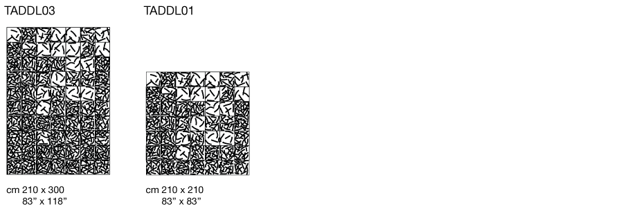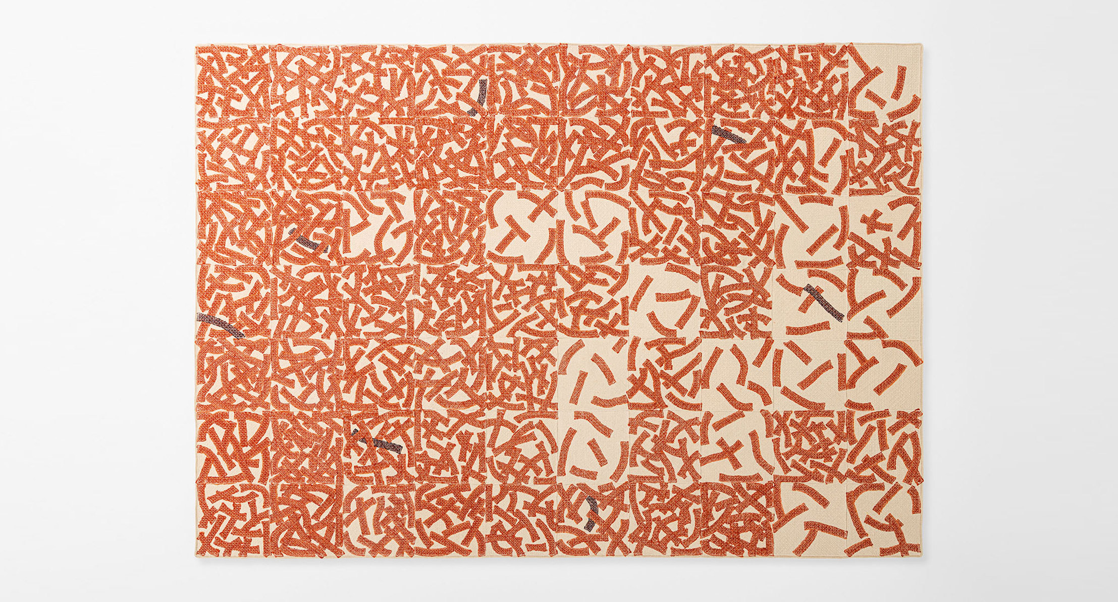 This modular rug is crafted by sewing with Punto Zigzag 30×30 cm wool felt elements.