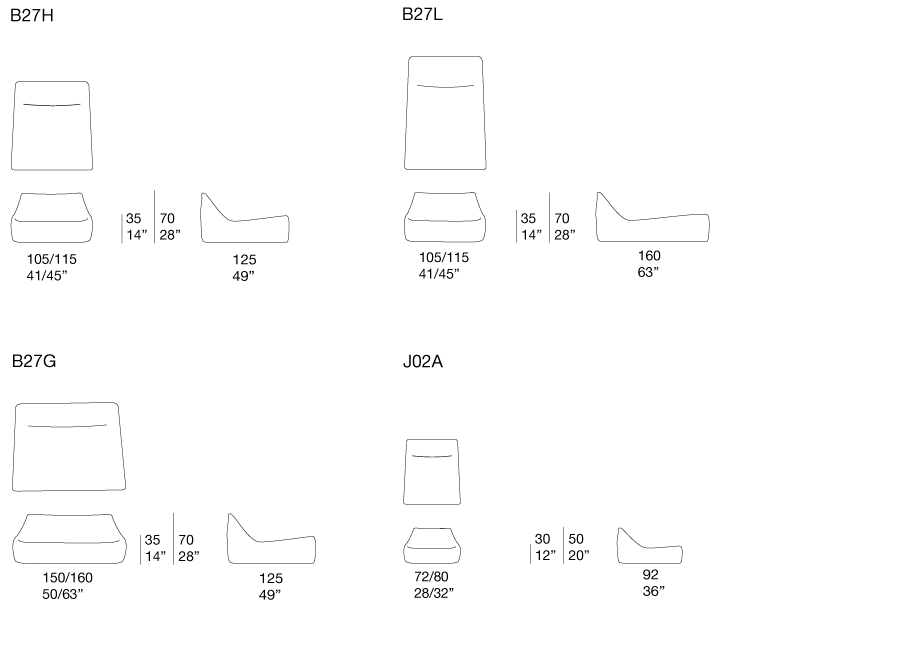 Upholstery: removable and available in the outdoor fabrics listed here below.