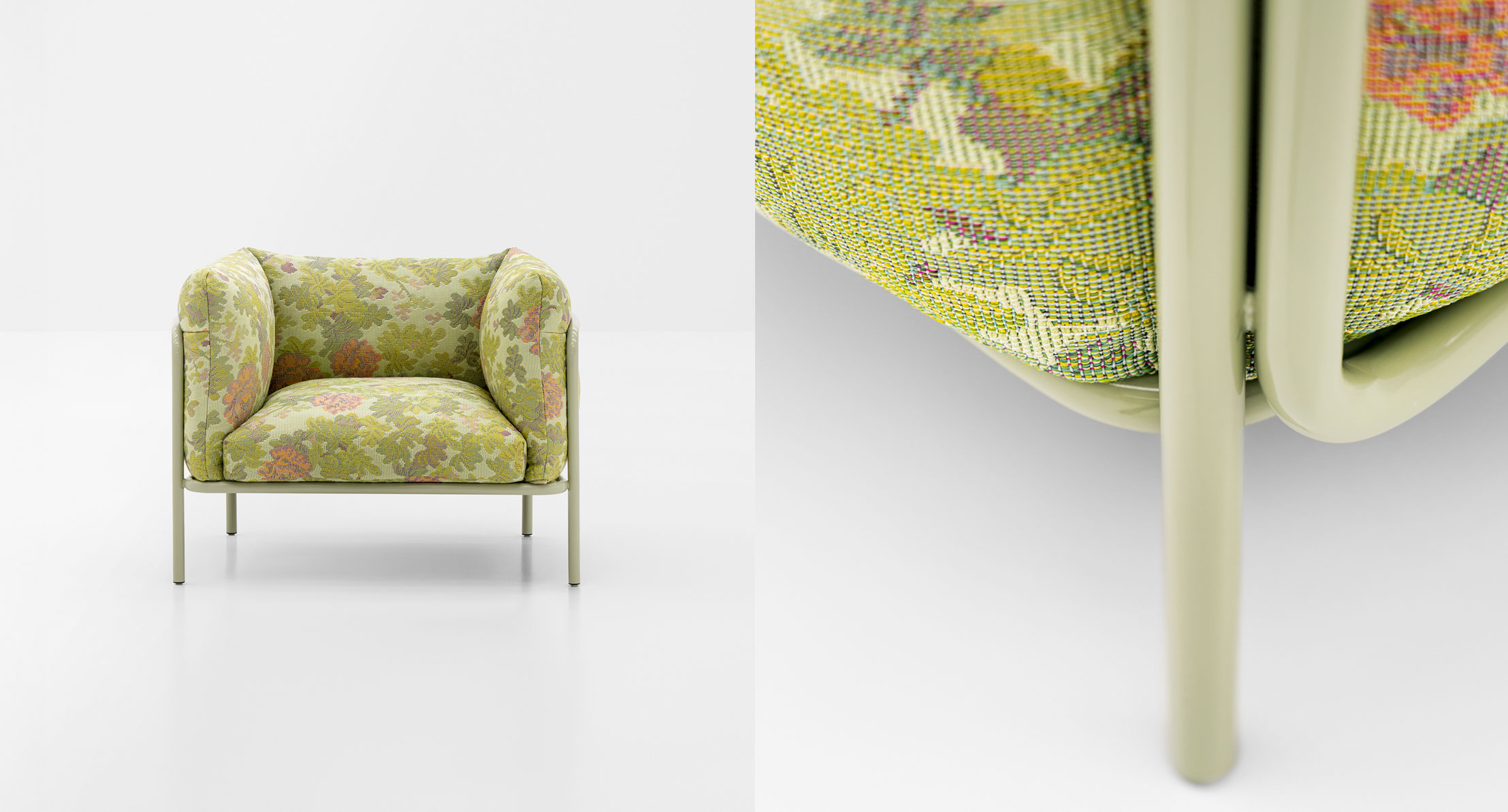 The seat, back and armrest cushions form a single padded element, simply placed into the structure: the different components are joined together in order to maintain the stability necessary to guarantee the maximum comfort.