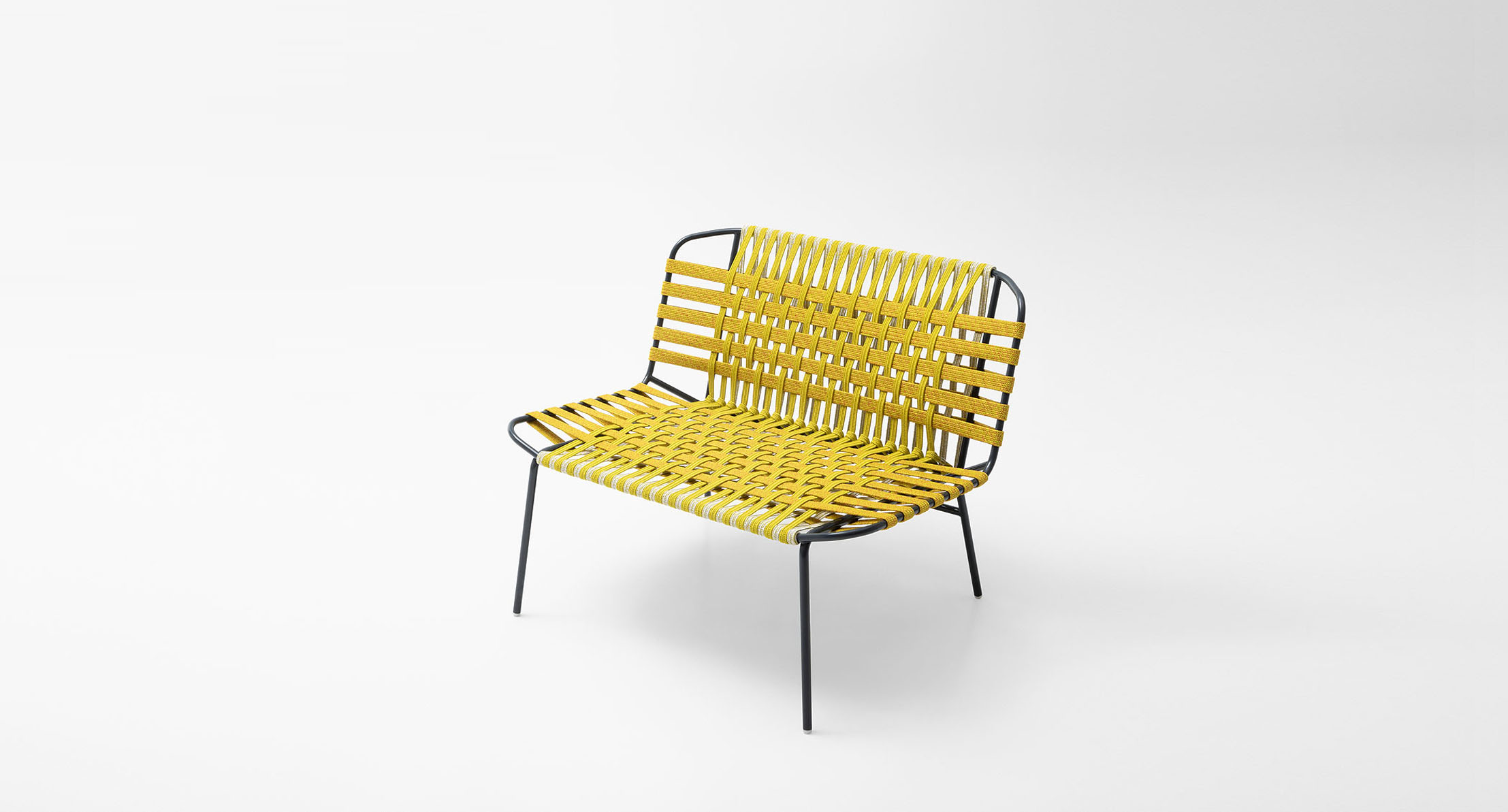 The series Telar also includes chairs with and without armrests, a two-seater sofa, a chaise longue, a sun bed and a pouf.