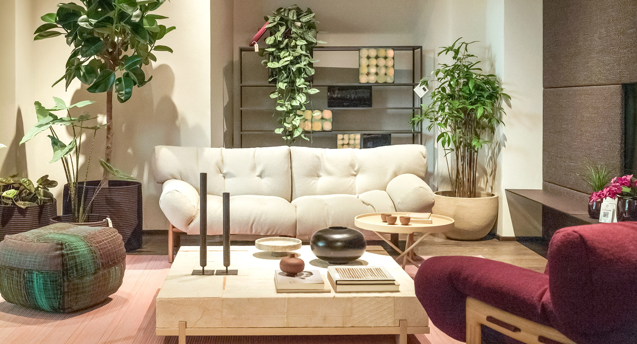 Per raccontare il personale e autentico concetto di abitare di Paola Lenti, per la parte interna del palazzo, tra pareti candide e sotto gli alti soffitti a volta, Kramer und Kramer sceglie novità dal segno ricercato, importanti riedizioni legate a nomi autorevoli della storia del design e una selezione di proposte di talenti emergenti. Gli ambienti intrecciano memoria e ricerca: dal divano Légère di Angelo Mangiarotti e Chiara Pampo al tavolino Half Moon di Greta Magnusson Grossman, fino alla panca Naga di Atelier Oï, alla poltrona Miriade di Estúdio Campana, al divano Arnò di Bertrand Lejoly e al tavolino Palinsesto di Robi Renzi: elementi eterogenei, che Paola Lenti riesce a far convivere in un insieme che rimanda una sottile, elegante e gradevole sensazione di armonia.