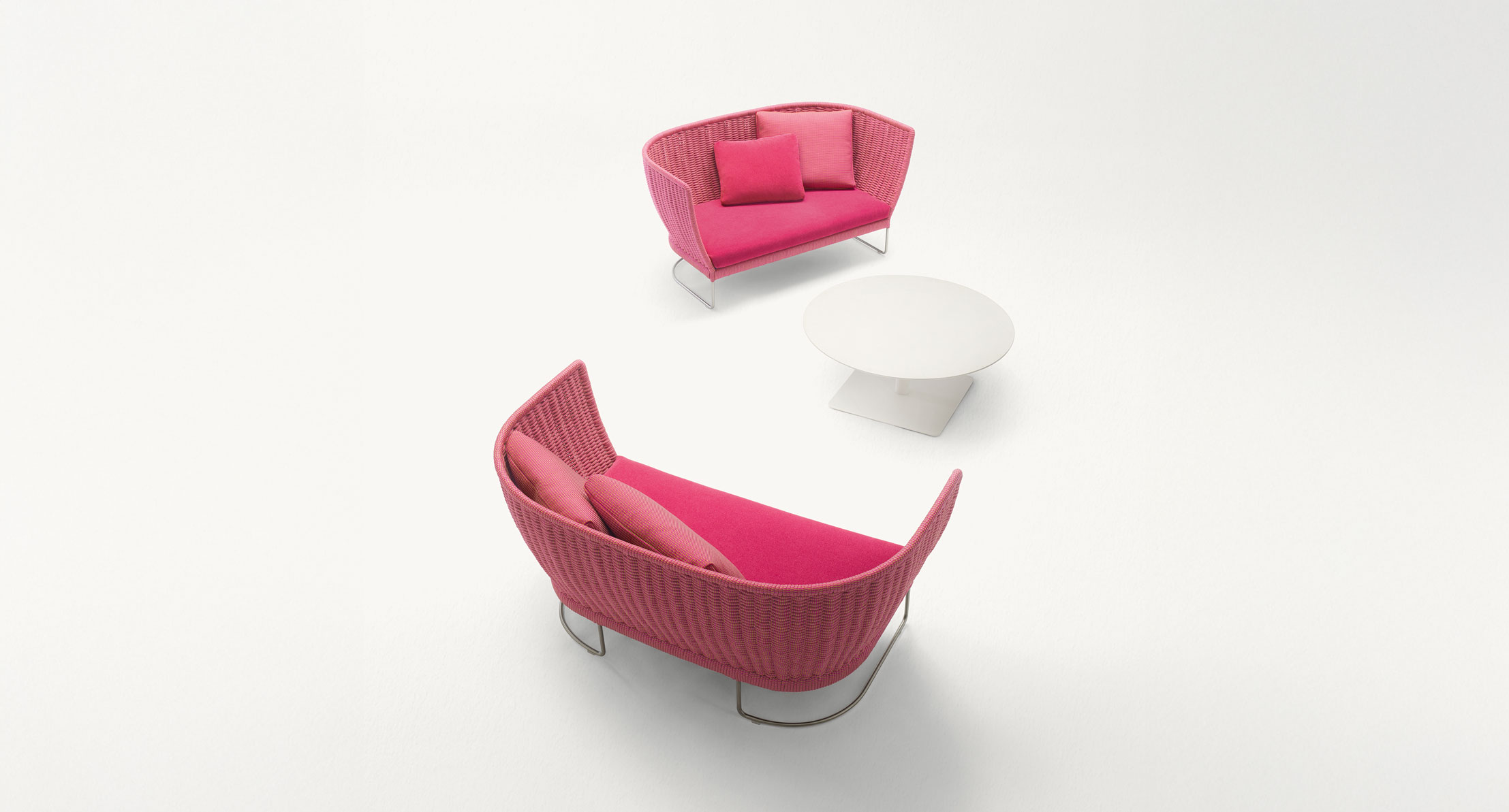 Con il rivestimento in corda Twiggy, che lascia in parte visibile la struttura in acciaio, struttura e base sono disponibili solo verniciate lucide e entrambe nello stesso colore.