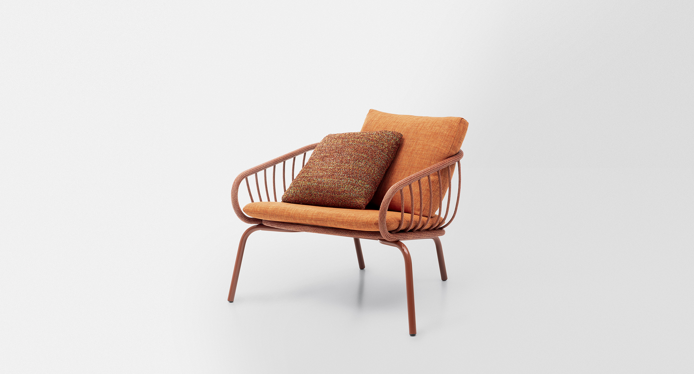 Imbottitura cuscino di seduta: fibra di poliestere riciclata e biodegradabile, inserto in poliuretano espanso indeformabile, fodera interna fissa in poliestere idrorepellente.