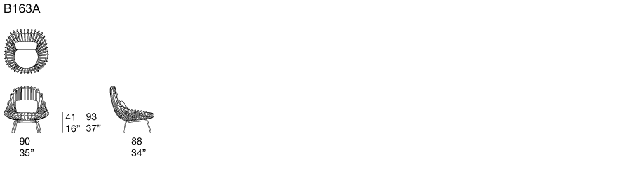 Cuscino di seduta: removibile, telaio interno completo di cinghie elastiche, imbottitura in fibra di poliestere riciclata e biodegradabile, inserto in poliuretano indeformabile, fodera fissa in poliestere idrorepellente.
