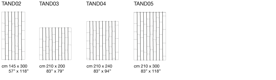 La disponibilità dei materiali e l’abbinamento dei colori genera ogni volta risultati cromatici diversi. Per la natura stessa del tappeto – ottenuto dall’unione di ritagli di lavorazione che altrimenti resterebbero inutilizzati – è possibile indicare solo la tonalità principale desiderata oppure optare per una versione multicolore.