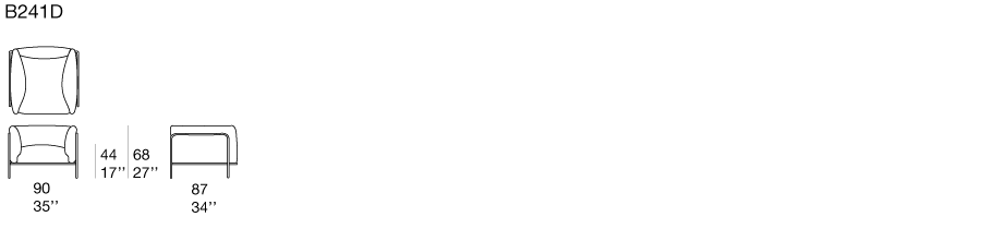 Il cuscino di seduta, lo schienale e i braccioli formano un unico elemento imbottito, semplicemente appoggiato all’interno della struttura in acciaio: i diversi componenti sono uniti fra loro in modo da mantenere la stabilità necessaria a garantire il massimo del comfort.
